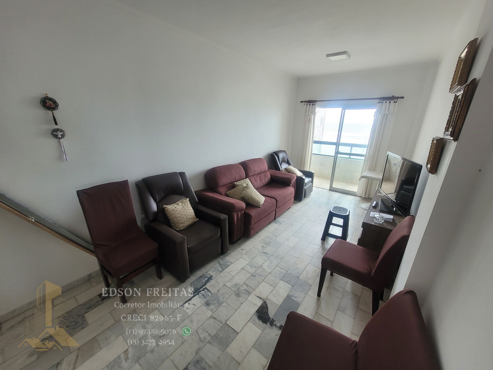 excelente apartamento de 2 dormitorios com sacada frente para o mar linda vista permanente no centro do caiçara perto dos comércios todo mobiliádo contato Edson Freitas creci 82965 imobiliária (13) 34774954 Zap (13) 974225076 site www.edsonfreitasimoveis.com.br